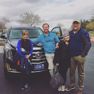 Next day was golf day. I mean a "real" golf day. And I was ready because my friend had given me some pink golf balls as a birthday present! The weather, however, had turned very windy and in turn quite cold. We tried to get an Uber that could take all of us and our golf clubs to a golf course out of the town but were having trouble finding a vehicle large enough. No problem! Trump International offered to take us in their car...
